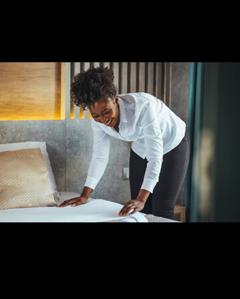 Faire le lit, entretien de la salle de bain, utilisation des produits de netoyages.